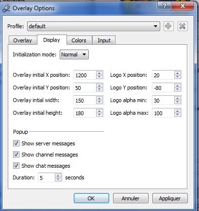 La position de la fenetre et du logo, les couleurs, les messages tout est parametrable et sauvegarble sous un plofil voulus.